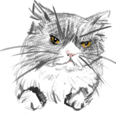 阿姐也認養了一隻咪仔,沒有咪仔的照片卻拿到了阿姐寄來的咪仔畫像。 聽說過農曆年的時候,這隻咪仔跟胖虎一起回了娘家,兩貓大打了一架,傷的是胖虎的爹,卻讓咪仔的爹和 胖虎的媽有了小小的心結。 是怎樣ㄚ.....人當時在美國的我難以想像那場混戰。 還好ㄚ咪安安穩穩的呆在哈哈的家裡。